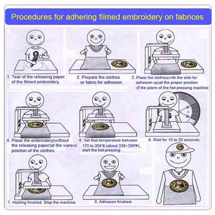 2. ApplicationIron-on, heat seal, and sew-on are the three most common types of Fire Department Patches. Iron-on can be created by applying heat from a household iron, but heat seal requires a professional machine. Both heat types melt the thermoplastic glue and adhere it after drying, but heat seal requires the higher temperature and pressure of a professional heat press machine. Fire Department Patches can be applied with fabric glues or sewn on. Other backings include rubber, magnet, velcro, and sticky. Sticky backing using something comparable to 'double sided sticky tape' and is often chosen when the badge application is temporary (such as at business conferences).