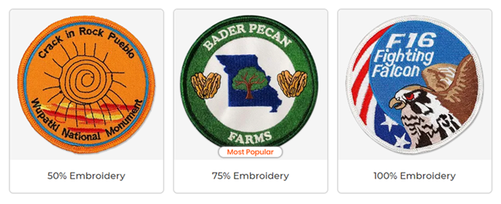 The size and design of your patch determines the patch’s embroidery percentage. On a 50% embroidered patch, at least half of the Patch’s twill backing is visible. This is good for simple, text-only designs, since the large amount open space is great for showcasing your message. A 75% Fire Department Patches allows larger, more intricate artwork, and covers more of the twill. For really intricate designs and logos, the 100% Fire Department Patches covers the entire backing with embroidery, leaving none of the twill visible. This style offers the most detail possible on a Fire Department Patches.