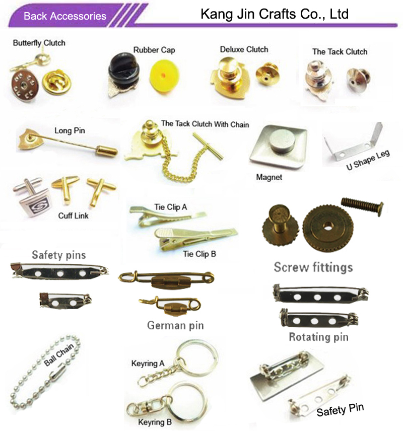 chrome dyed black, pearl gold, pear nickel, double plating and more.Accessories: butterfly button, safety pin, senior card cap, plastic cap, rotating pin, screw fittings, german pin etc. Process: casting, polishing, planting, stamping Surface: soft enamel, synthetic enamel, hard enamel, synthetic enamel, without polish, printed, painted, epoxy coating etc. Packing: poly bag, bubble bag, OPP bag, plastic box, gift box Sample Times: 8 ~12 work days Delivery Times: 10~15 work days (the exact time as the complexity and quantity) Shipment: seafreight, airfreight, DHL, TNT, UPS & FedEx Payment: T/T, PayPal, Western Union are available Customized: MOQ 50pcs per item, provide design or sample, material, size, quantity, plating, surface and accessories an request