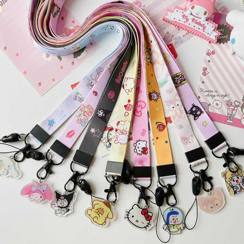 Cute Lanyard For Keychain ID Card HolderAn attachment Lanyard is a light duty tether worn around the neck, shoulder, wrist or attached to the belt as a sling to conveniently carry items such as keys or identification cards, or as a safety harness to prevent accidental dropping of valuable handheld items such as a camera. Light-duty webbing lanyard for attaching keys, with a metal clip similar to that of a leash.The style, design or material used will vary depending on end-purpose of the Lanyard. Lanyard materials include polyester, nylon, satin, silk, polyethylene terephthalate (PET), braided leather or braided paracord.Common stylesPolyester Imprinted LanyardsNylon Imprinted LanyardsTube Imprinted LanyardsDye-sublimated Lanyards or full-color LanyardsAccessory for electronicsLanyards are widely used with small electronic devices such as cameras, MP3 players and USB flash drives to prevent loss or dropping. Electronics designed to take a Lanyard usually have a small through-hole built into a corner or edge of the case or anchored to the frame of the device; the corresponding Lanyard generally has a loop of thread on the end that is attached to that hole with a simple knot, usually a cow hitch. Some earphones incorporate the audio signal into the Lanyard, meaning it doubles up as headphone cords as well. The Wii Remote wrist strap is a form of Lanyard, keeping the device attached to a player's arm during the often vigorous movements involved in its use.Badge or identification holderLanyards are commonly used to display badges, tickets or ID cards for identification where security is required, such as businesses, corporations, hospitals, prisons, conventions, trade fairs, and backstage passes used in the entertainment industry. Such Lanyards are often made of braided or woven fabric or split with a clip attached to the end. A plastic pouch or badge holder with at least one clear side is attached to the Lanyard with the person's name badge or ID card. Occasionally, small items like business cards, pens or tools can be placed behind the badge for easy access. Lanyards can also be used as keychains, particularly in situations where keys can easily be lost, such as gyms, public pools and communal showers.In these cases, Lanyards may be customised with the related name and/or logo of the event, business, or organisation. Lanyards can feature a variety of customisation techniques including screen-printing, Jacquard loom weaving, heat transfer, and offset printing.