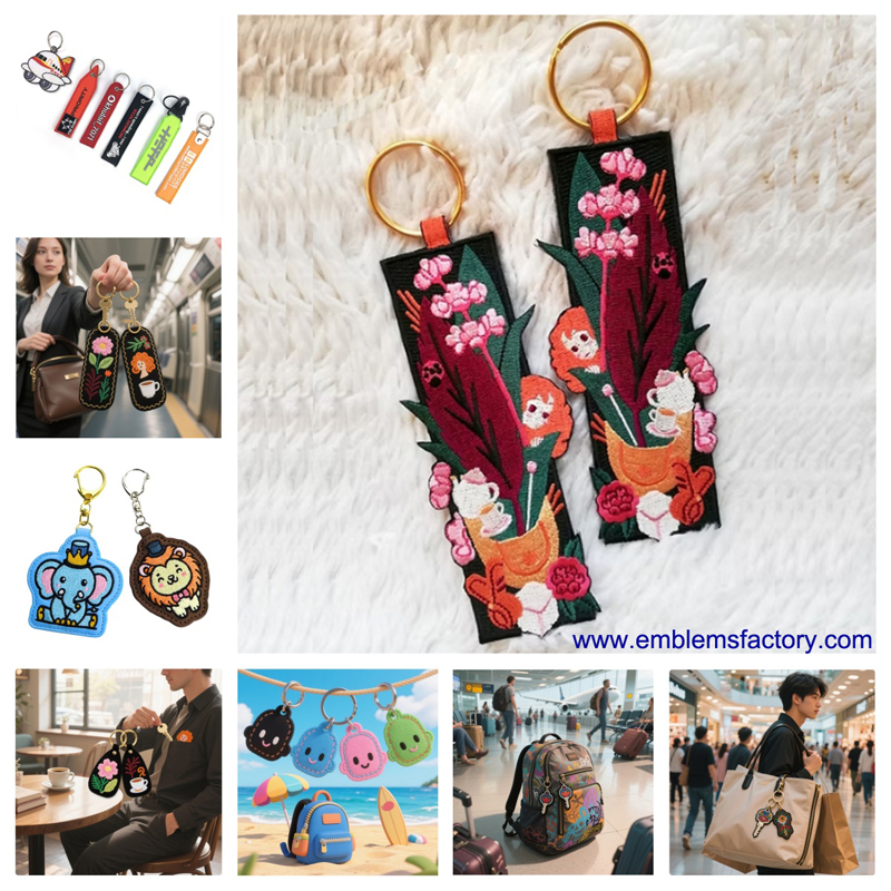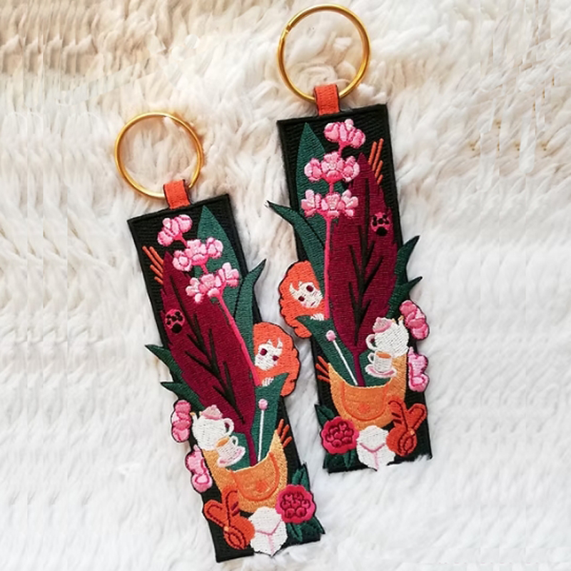 Exquisite Embroidered Keychains, with bright colors but harmoniously blended, every detail is carefully carved, showing elegant style #keyring #embroiderykeychain #keychain #fabrickeychainCraftsmanship: Using exquisite embroidery techniques, every stitch is ingenious, the needlework is delicate and subtle, the pattern is vividly presented, the quality is superior, and it can withstand careful taste.Creative design: Breaking the convention, creatively combining elements such as plants and characters, bold and clever color matching, giving the keychain a unique artistic charm, easily standing out among many keychains, is a symbol of personality and taste.Luxurious texture: The classic black base and the noble gold ring complement each other, revealing a luxurious texture in simplicity. Whether it is to add a sense of refinement to daily self-use or to convey your thoughts as a gift, it is perfect.Embroidered Keychains usage scenario:On the way to and from get off work or school, hang it on the Keychain, show your elegant taste when taking out the key, and add color to the door opening action.Hang Embroidered Keychains on the zipper of a handbag during leisure shopping, and it will swing with your steps, which is a unique decoration for the bag. When you pay with your keys, you can show your fashion attitude.Hang the zipper of your travel backpack or suitcase to find your keys easily during your trip, add a unique touch to your journey, and record your beauty.At social gatherings and parties, when you take your Embroidered Keychains from your handbag, it will attract attention, attract topics with its unique design, and show your charm.